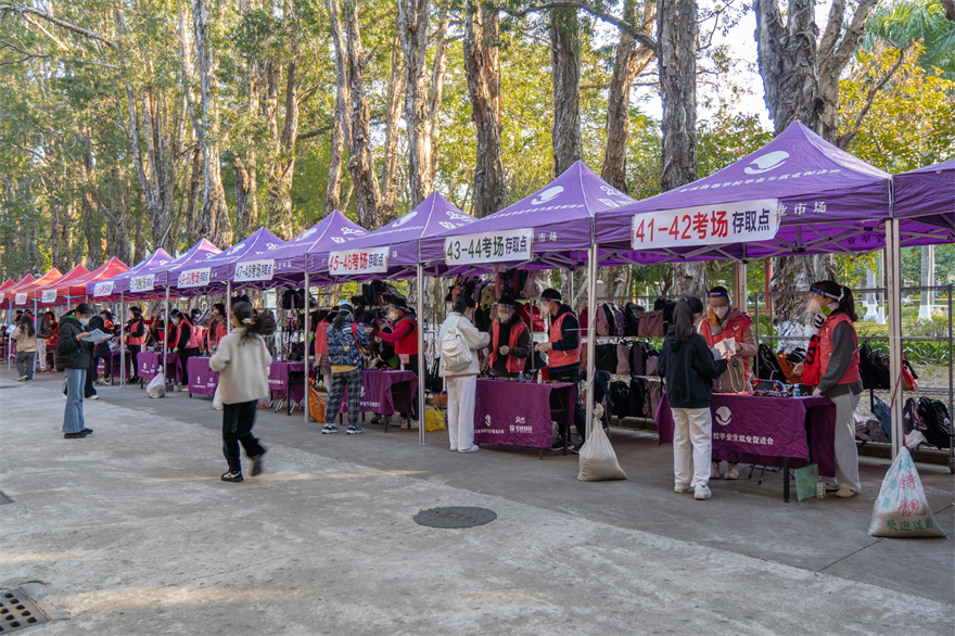 30多位总务后勤部员工和530名学子挺身而出,参与招生考试志愿服务工作。校团委在接到通知后,第一时间在全校紧急招募研究生招生考试服务志愿者,在短短的时间内,530名志愿者招募完毕并迅速到位。根据现在岗位需求,青年志愿者们被分到六个不同的小组,分别在考务协调、考生物品存放处、安检处、入口查验、考场等地负责志愿工作,工作时间从早晨六点半到下午五点半。法语专业的陈竹颖和希伯来语的张妍菲是负责物品保管工作的志愿者,她们也负责驿站搭建和相关准备。尽管今天已连续工作了近10个小时,但她们表示服务完后听到考生感谢的话语都会非常得开心,“能为考生们服务是义不容辞的事,助人是使命也是快乐!”志愿者说道。