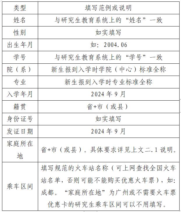 2.各培养单位统一组织研究生新生准确填写研究生证和学籍表的个人信息、粘贴相片(一寸彩色相片),并做好信息审核工作。研究生证上家庭所在地必须如实填写,需要购票优惠卡乘坐火车的必须填写乘车区间。