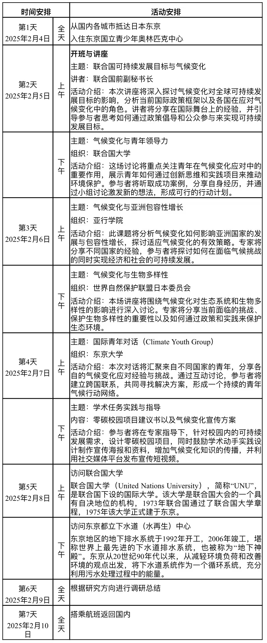 为推动联合国等国际组织的教育实训,提高我校研究生国际化水平,在联合国青少年领航计划、全球青年领导力发展理事会、联合国全球领导力与 ESG 发展中心的共同支持下将开展全球气候变化专题研学实训冬令营,现将项目有关研究生报名工作通知如下: