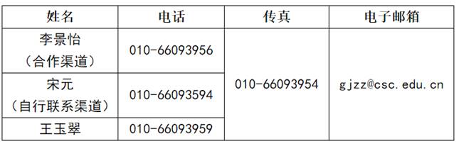 王婷/徐一平电话:010-66093987/3960 邮箱:gjzzhbrc@csc.edu.cn